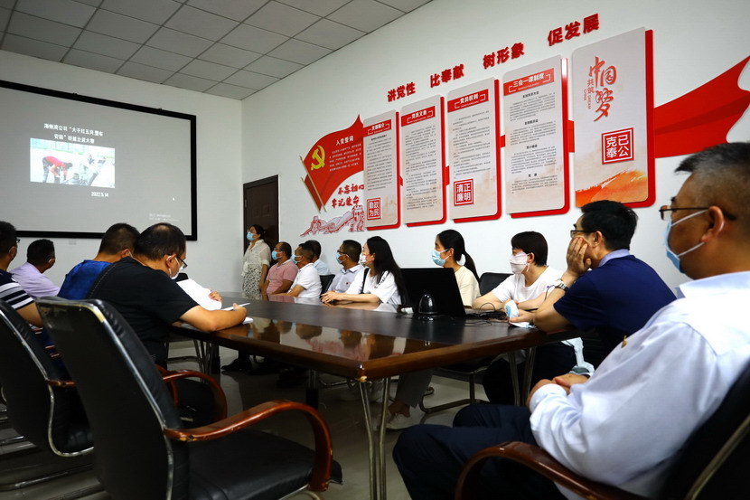 與會人員邊看邊聽講解海州灣黨支部規(guī)范化展板和本月書記項目的落實情況,以及在海州灣黨建活動室觀摩學習了上半年黨建基礎(chǔ)臺賬和活動影像。各黨支部就基層黨組織規(guī)范化及書記項目“點將臺”的落實情況作了匯報交流。黨委副書記楊善革針對各支部的黨建工作情況作了詳細的點評,指出各支部黨建工作中存在的不足,并要求各支部立即整改。