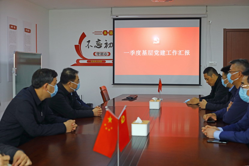 隨后,戴書記一行在會議室聽取投資公司一季度黨建工作匯報,對投資公司工作給予肯定,投資公司領導班子面對突如其來的疫情時,做到了應變有力、保障有力、組織有力。在聽取近期生產經營、黨的建設等工作匯報后,戴書記提出四點指導意見:一是不折不扣落實上級指示精神。二是毫不動搖抓好疫情防控和復工復產。三是一著不讓推進黨建與工會工作。四是深入細致安全穩定環保工作。