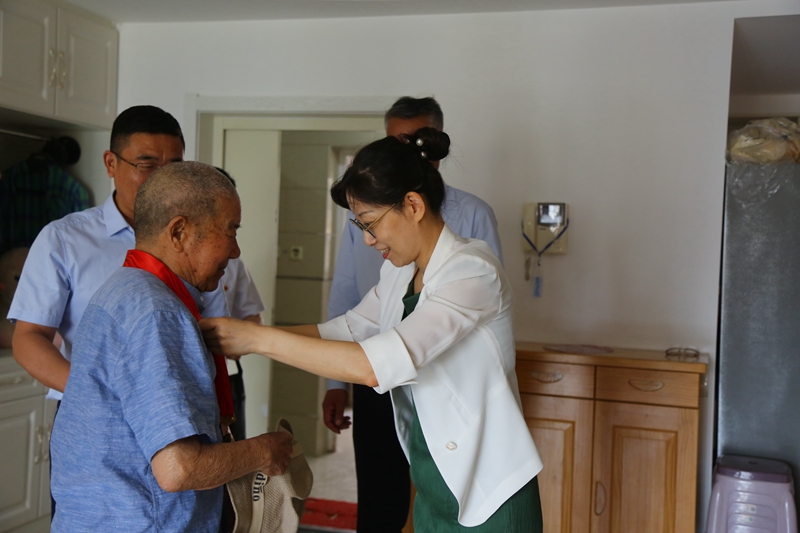 在公司黨委書記、董事長、總經理王德志的陪同下,汪群書記走訪了老黨員耿學奎,與老黨員及家屬進行了親切的交流,詳細了解他的晚年生活、身體狀況和存在的困難,傾聽他的想法。同時,還向老黨員介紹了集團公司近期開展的各項工作情況及近年來獲得的各項殊榮,并感謝他們長期以來心系企業、建言獻策,為集團的發展做出了積極貢獻。隨后,汪書記還為他們帶上了光榮在黨50紀念章。老黨員們激動又自豪,紛紛表示,在即將迎來黨的百年華誕之際,深深感受到以習近平同志為核心的黨中央的關懷和褒揚,將更加牢記殷切囑托、踐行初心使命,聽黨話、感黨恩、跟黨走。?