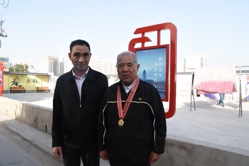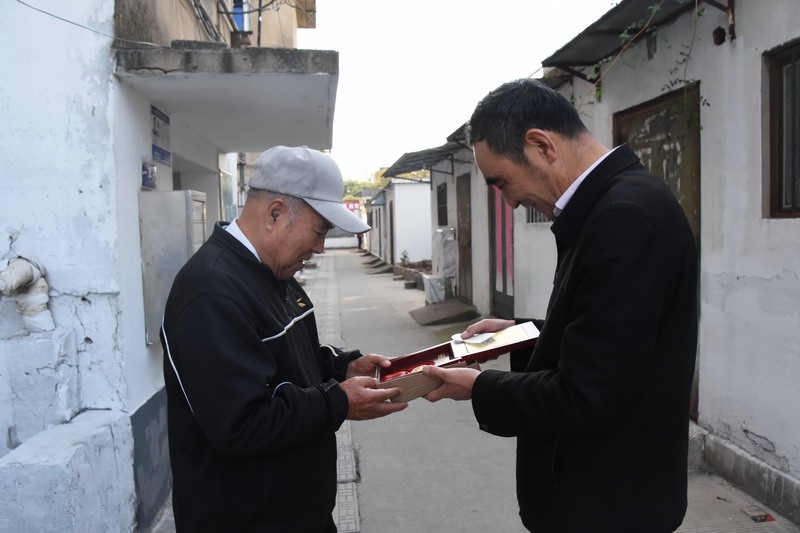 解韻波同志今年83歲,19561月參軍,那年19歲,同年6月經(jīng)過(guò)短期高強(qiáng)度培訓(xùn),作為無(wú)線(xiàn)電通訊兵出國(guó)抗美援朝。1959年西藏達(dá)賴(lài)集團(tuán)發(fā)動(dòng)叛亂,剛回國(guó)不久的解韻波作為無(wú)線(xiàn)電技術(shù)兵種隨即跟隨大部隊(duì)入藏平叛。至今他仍保留著抗美援朝軍功章,入藏平叛軍功章、紀(jì)念章等。1962年退伍分配至臺(tái)北鹽場(chǎng)工作,1997年退休。今天慰問(wèn)的時(shí)候,在鄰居們的簇?fù)砗推G羨之中,還沒(méi)進(jìn)家門(mén),鄰居們就迫不及待地要求打開(kāi)“紀(jì)念章”一睹風(fēng)采。紀(jì)念獎(jiǎng)?wù)聮煸诶蠎?zhàn)士胸前,一眾鄰里夸贊不斷:這份榮譽(yù)沉甸甸的。這份榮譽(yù)是拿命換來(lái)的。這是不得了的榮譽(yù)啊。這樣的老兵是我們的寶貝哦,我們要尊敬啊。……就在小區(qū)活動(dòng)廣場(chǎng)上,老戰(zhàn)士與大家暢談起保家衛(wèi)國(guó)光榮的戰(zhàn)斗經(jīng)歷,烽煙往事歷歷在目。退伍后,不褪軍人本色,幾十年如一日立足家鄉(xiāng)建設(shè),為臺(tái)北鹽場(chǎng)奉獻(xiàn)青春,為國(guó)家建設(shè)貢獻(xiàn)力量。大家對(duì)解韻波老戰(zhàn)士的革命戰(zhàn)斗和建設(shè)祖國(guó)的歷程表示由衷贊嘆和敬佩。