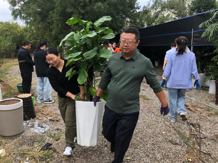 近日氣溫持續降低,為進一步發揮機關人員的團隊合作精神與責任擔當意識,切實保障不耐寒綠植盆栽順利越冬。機關黨支部聯合益豐分公司黨支部在盆景園內開展“突擊勞動顯擔當 共為綠植搬新家”主題黨日活動。