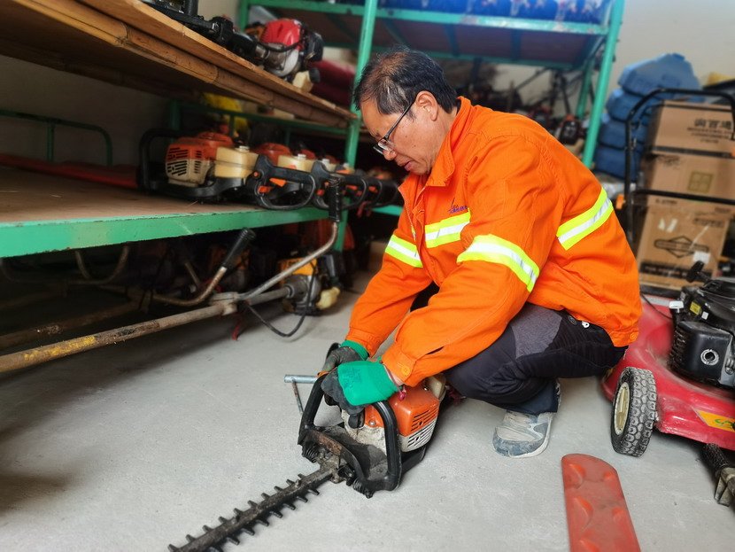 次檢修與保養,重點割灌機、草坪機、綠籬機、綠籬車進行全面細致檢查,認真查看設備的運行狀態,檢查設備的部件是否完好,對發現的問題及時進行修復和更換。同時,還對設備進行了清洗和潤滑,確保設備在運行過程中能夠順暢無阻。
