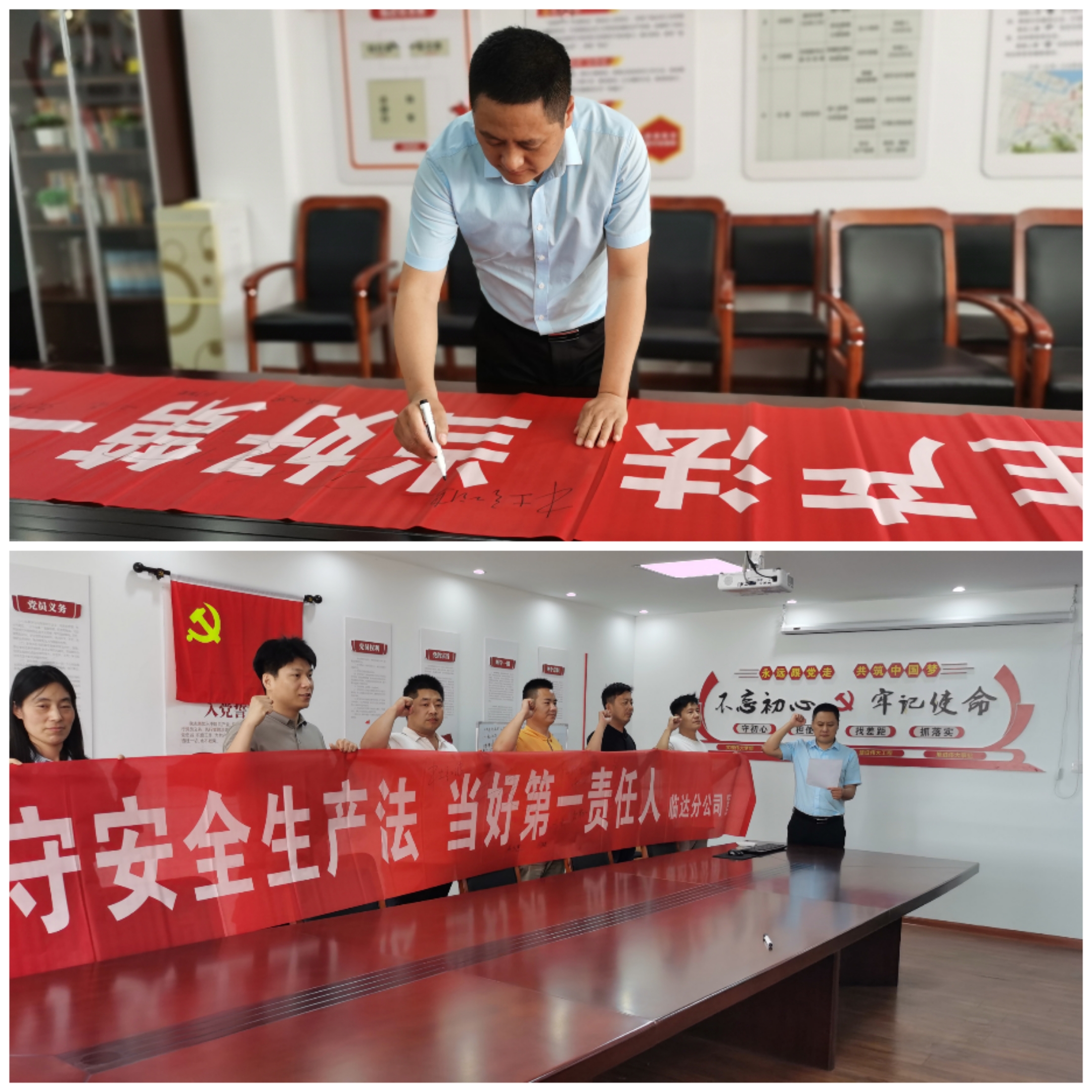 6月7日上午11時,在公司會議室,臨達分公司員工一起舉起右手,一字一句的宣誓,字字鏗鏘有力,擲地有聲。用錚錚誓言銘記安全責任,牢筑安全生產防線,為全力抓好公司的安全工作保駕護航,向黨的二十大獻禮。