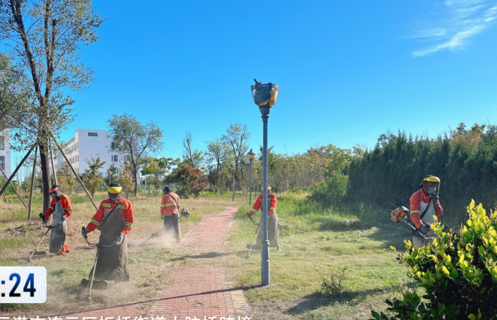綠化班組每日出動40余人次,采取人機結合方式,對綠化帶內雜草進行全面清理,對綠植、灌木、草坪進行全面修剪工作,提升園林綠化精心化管護水平。結合當前實際,科學施肥合理安排澆水時間、澆水量,有效防止因干旱造成綠化植物死株死苗現象出現。為強化科學養護,提升景觀。搶抓好天氣,對管轄園區綠植物開展修剪行動,除枯死枝、折斷枝、病蟲枝、下垂枝,死樹、死苗、雜物進行清理,促進植物正常生長,有效提升綠化景觀效果。