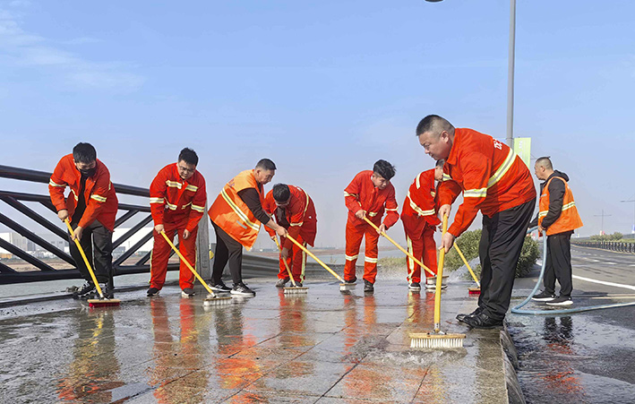 10月18日上午,悅升公司機(jī)關(guān)管理人員深入一線對(duì)海濱大道南卡口至疏港大道路段及橋梁路緣石進(jìn)行強(qiáng)化清洗,用實(shí)干打好賽道保障“戰(zhàn)役”。工作現(xiàn)場(chǎng),一臺(tái)高壓沖洗車先行對(duì)賽道路緣石和橋梁輔道進(jìn)行高壓沖洗,隨后,工作人員一字排開,用毛刷不斷擦洗地面頑固臟污,大家斗志昂揚(yáng)、步步推進(jìn),做到?jīng)_洗無漏洗、無死角,最后再用灑水車清洗一遍。經(jīng)過近三小時(shí)清洗,高標(biāo)準(zhǔn)完成路源石和橋梁輔道保潔清洗工作,有效提高了賽道潔凈度。截至目前,已完成該路段2000多米路緣石清洗工作。