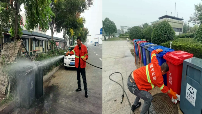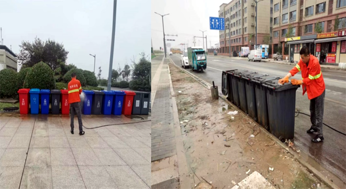 連日來,為進一步提升徐圩新區環境衛生質量,營造干凈清爽的“兩節”氛圍,環衛分公司對轄區內生活垃圾桶、果皮箱進行全面清洗,得到了業主方肯定。