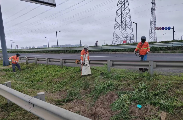 路邊雜草“勤于收割”。面對高溫少雨天氣,道路一線輔道雜草生長迅猛。該分公司女子班228等班組人員在班長帶動下,每天身背幾十斤重的打草機,重點強化清理徐圩核心區域云河南路,上海路、云六路、西安路等路段雜草。工作現場無懼強烈陽光曝曬,來回不停擺動機械,持續工作時長達5個多小時。女子班保潔員郁恩甲,不甘落后,工作中爭先恐后,三天以來,共清理輔道雜草近3000多米長,有效控制了雜草生長,還原了路面整潔環境。